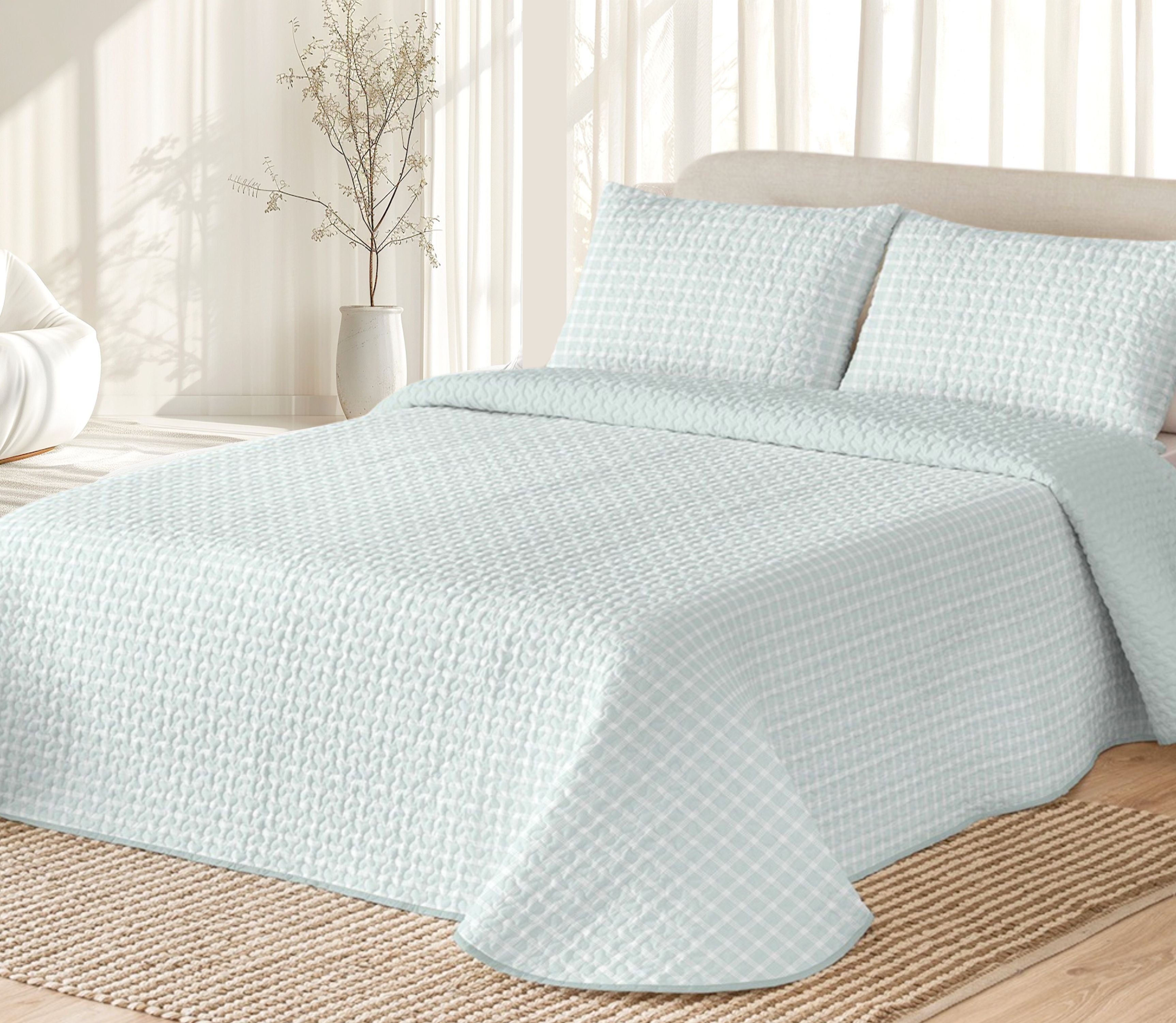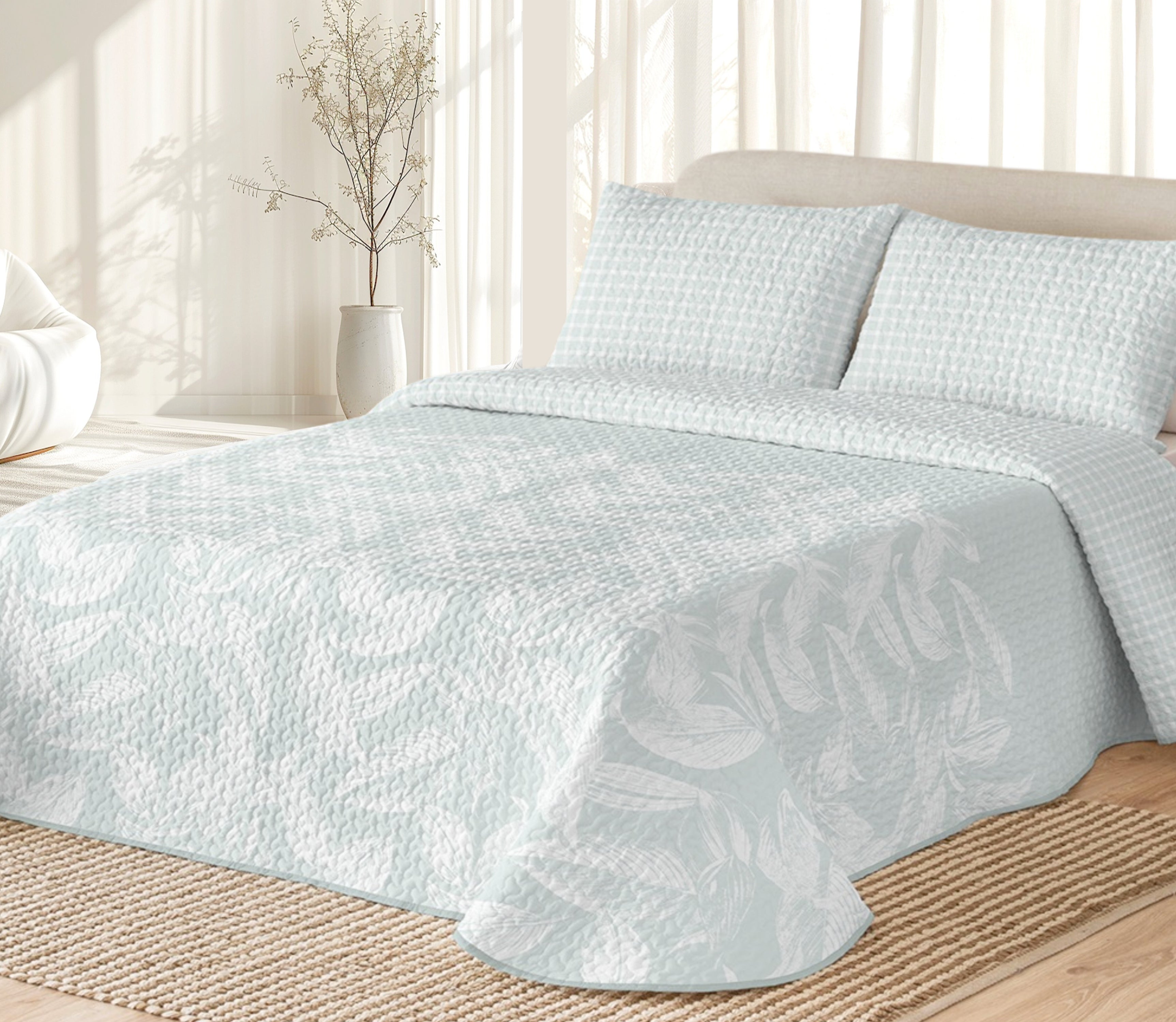 Añada un toque de frescura y elegancia a su cama. Con sus tonos suaves, esta fina colcha es ligera y acogedora en las noches de verano.